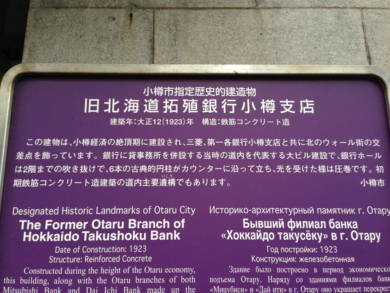 さらにビックリするのが、この旧北海道拓殖銀行小樽支店の建物です。建築はなんと大正12年!ですから、もうすぐ築90年になろうというところです。もちろん構造は鉄筋コンクリート造ですので、まだまだ使えそうですね。