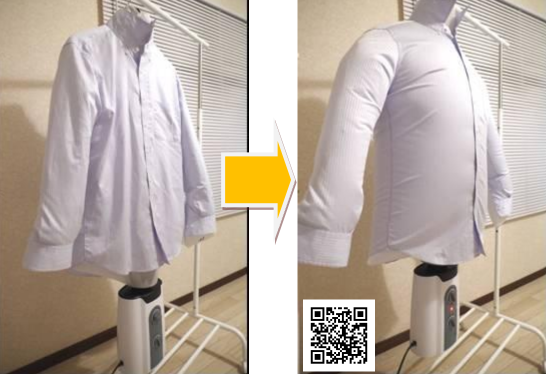 とは言え、通常ならシャツをアイロンがけするためには、アイロンと台を用意し、アイロンをシャツに押し当てるなどの手間がかかりますが、本製品はそれをまるまる省ける点が売りということ。