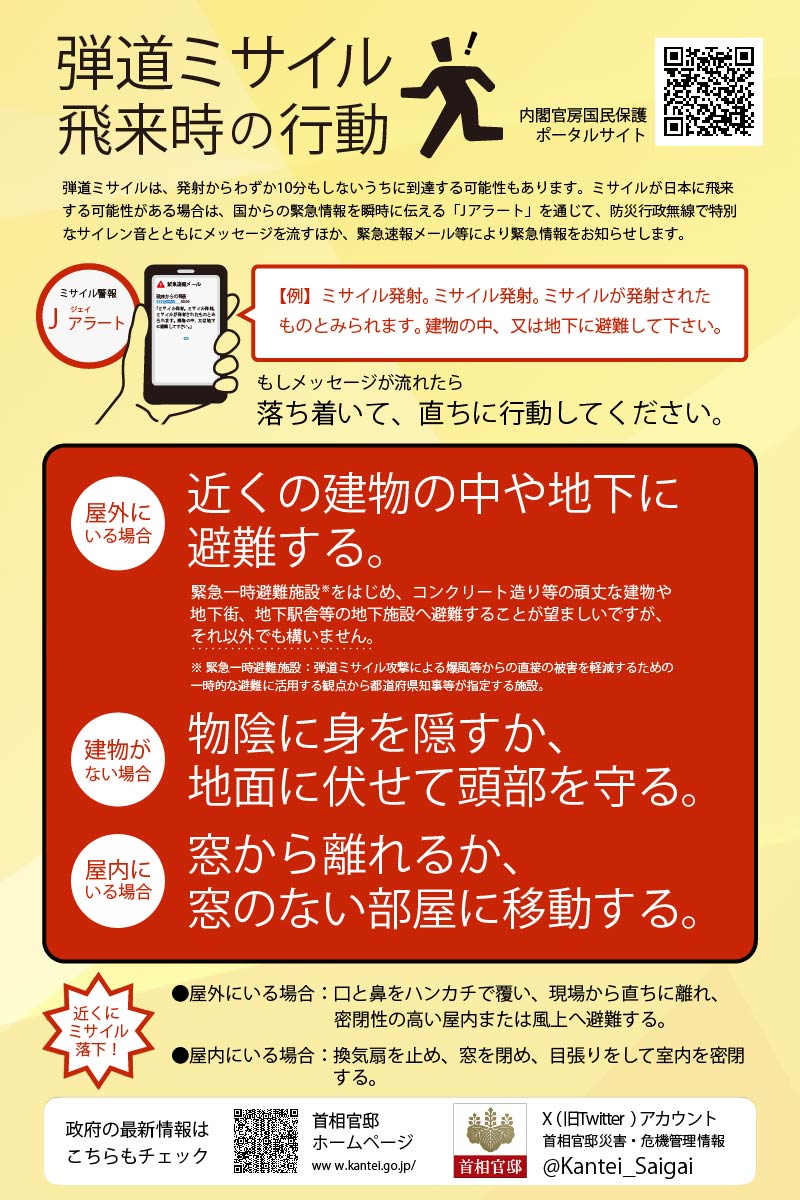 内閣官房の国民保護ポータルサイト「弾道ミサイル飛来時の行動」